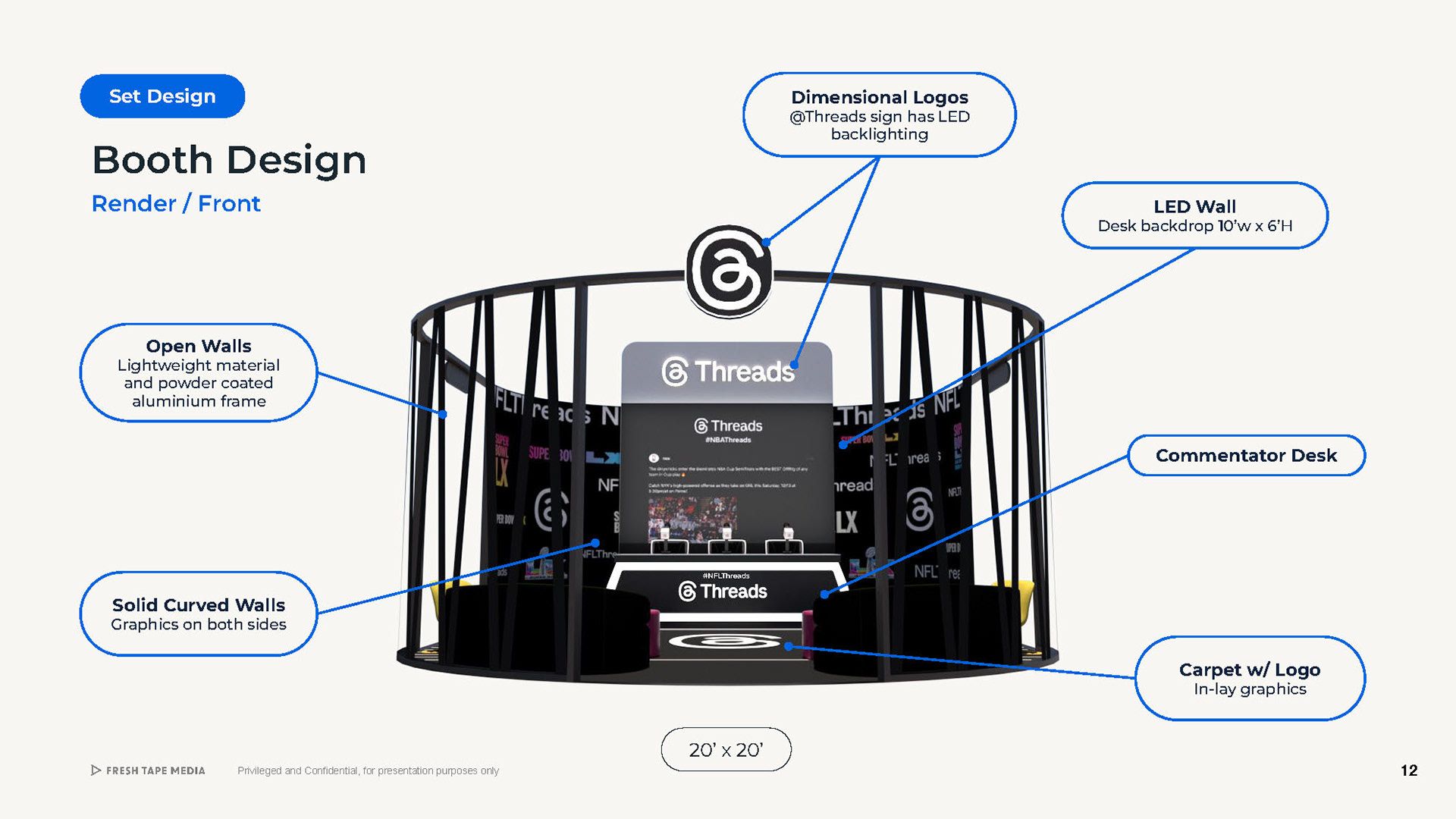 Meta Threads | SuperBowl Booth Design & NBA Cup Final Commentators Desk